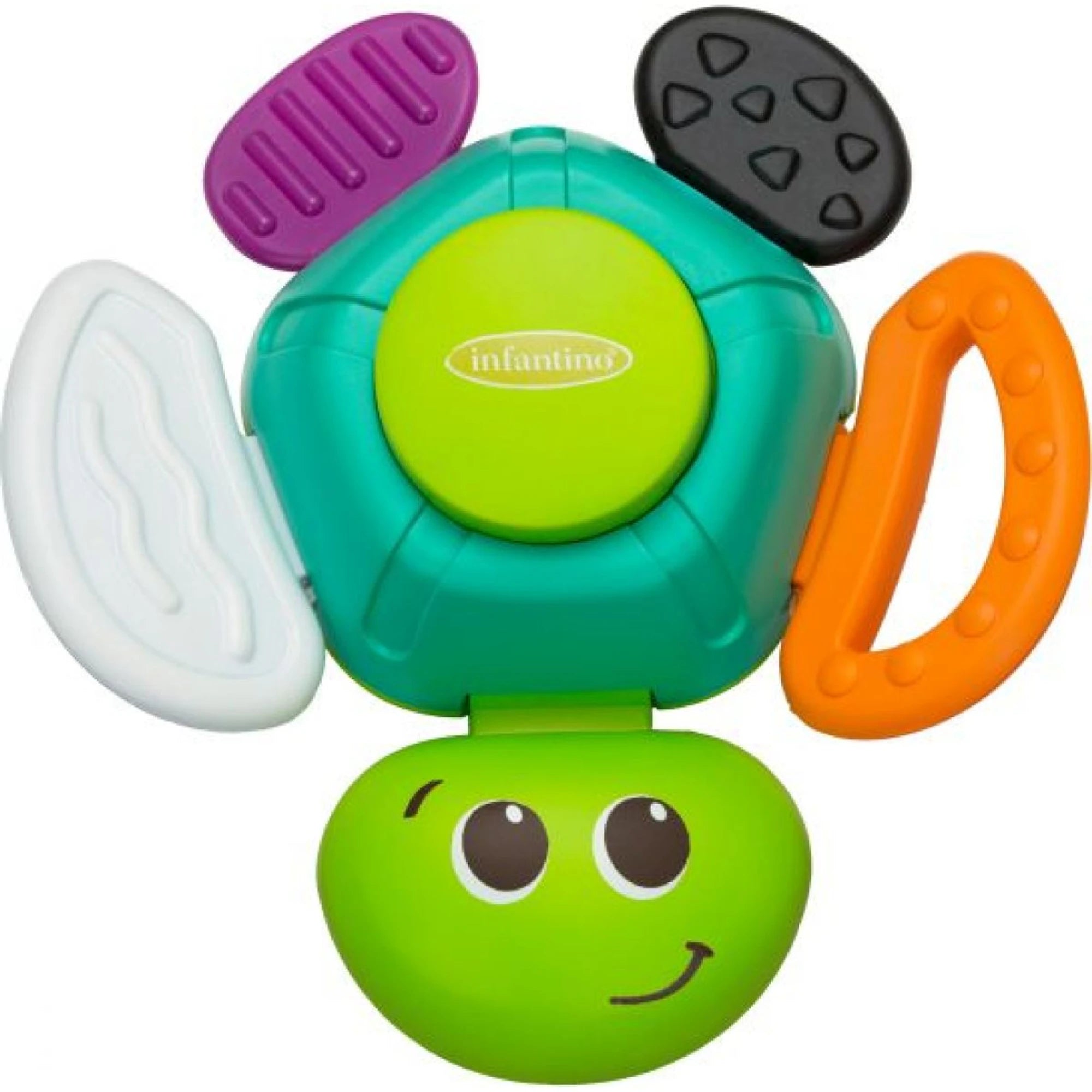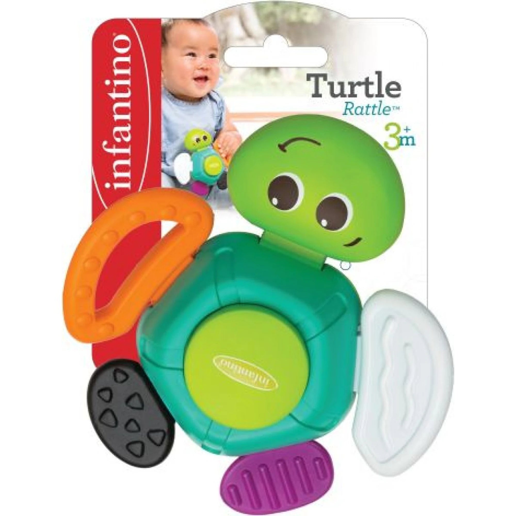 Šarena kornjačica postala je inspiracija za dječju zvečke. Uz to mališanima nudi različite teksture materijala, kao i grickalice za olakšanje natečenih desni pri nicanju prvih zubića.
